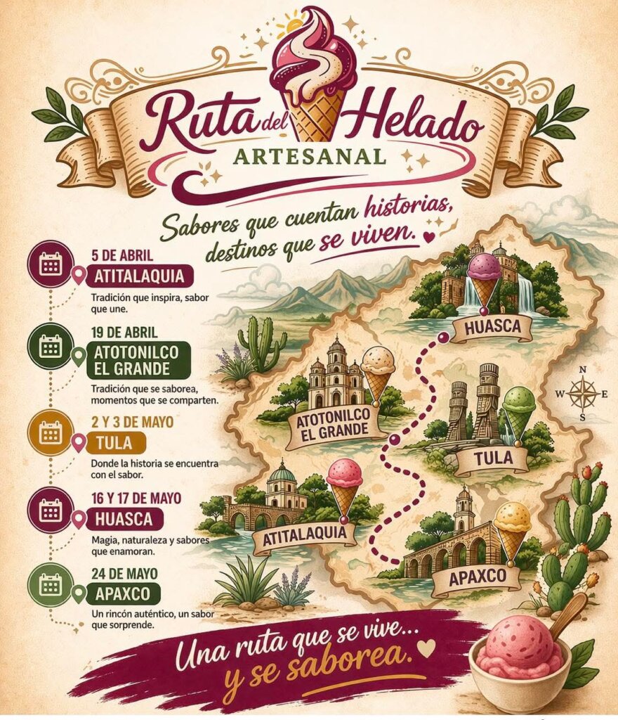 Este festival forma parte de un circuito turístico que busca posicionar a Hidalgo como un destino gastronómico y cultural. La Ruta del Helado 2026 contempla seis sedes: